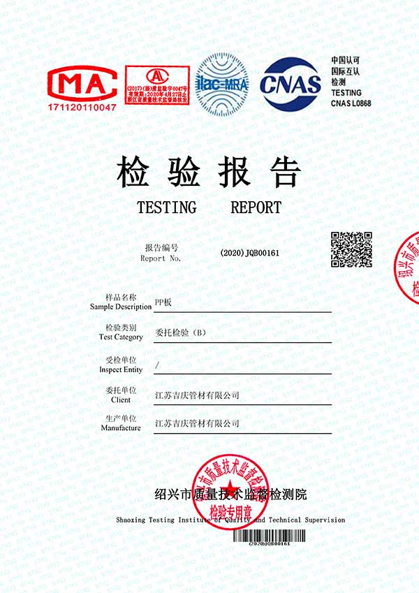 江蘇吉慶管材集團(tuán)有限公司創(chuàng)辦于2010年2月,是pp管,pp管材,pp管件,pp風(fēng)管,frpp管,frpp管材,pph管,pph管材,pph管件,pph風(fēng)管,pvdf管,pvdf管材,pp儲(chǔ)罐,pp板材的專業(yè)化生產(chǎn)企業(yè)。公司占地30余畝,擁有各類資產(chǎn)8000余萬(wàn)元,專業(yè)技術(shù)人員20余人,管材生產(chǎn)線10條,管件生產(chǎn)線11條,具備了10000余噸各類防腐塑料制品的年生產(chǎn)能力。公司通過(guò)了ISO9001-2000質(zhì)量體系認(rèn)證,同時(shí)被評(píng)為AAA信用單位,2018年公司被評(píng)為高新技術(shù)企業(yè),此后陸續(xù)取得安全生產(chǎn)管理證書(shū)等榮譽(yù)。公司位于水上花園城市----江蘇省揚(yáng)中市八橋鎮(zhèn)永福路18號(hào),交通便捷,可直接導(dǎo)航至公司園區(qū)內(nèi)。公司全體員工將以高度的敬業(yè)精神,嚴(yán)格的質(zhì)量控制理念和科學(xué)的管理方法,及時(shí)周到的服務(wù),竭力為我國(guó)塑料管道在各領(lǐng)域的推廣和應(yīng)用作出更大的貢獻(xiàn)!